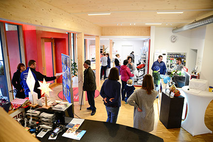 Für die Gäste waren zum Jubiläum verschiedene Aktionen geplant worden. So gab es an den beiden Tagen der offenen Tür eine Ausstellung von Elektro-Geräten und eine Vorführung des neuen Miele-Dampfgarers. Des Weiteren konnten Besucher im „Technik-Mobil“ verschiedene elektrotechnische Anwendungen rund ums Haus kennenlernen. Zum Thema E-Mobilität stellte die Firma E-Cap Mobility ein Elektro-Fahrzeug für Probefahrten zur Verfügung. Beim großen Elektro-Quiz gab es tolle Preise zu gewinnen, unter anderem Karten für ein FC Bayern-Spiel. Kulinarisch wurden die Gäste von Spezialitäten aus der Region verwöhnt, die der Frauenbund Tittmoning zubereitet hatte. Auch die Kinder hatten ihren Spaß und konnten sich als Baumeister betätigen – mit einer riesigen Anzahl an Holzbauklötzen